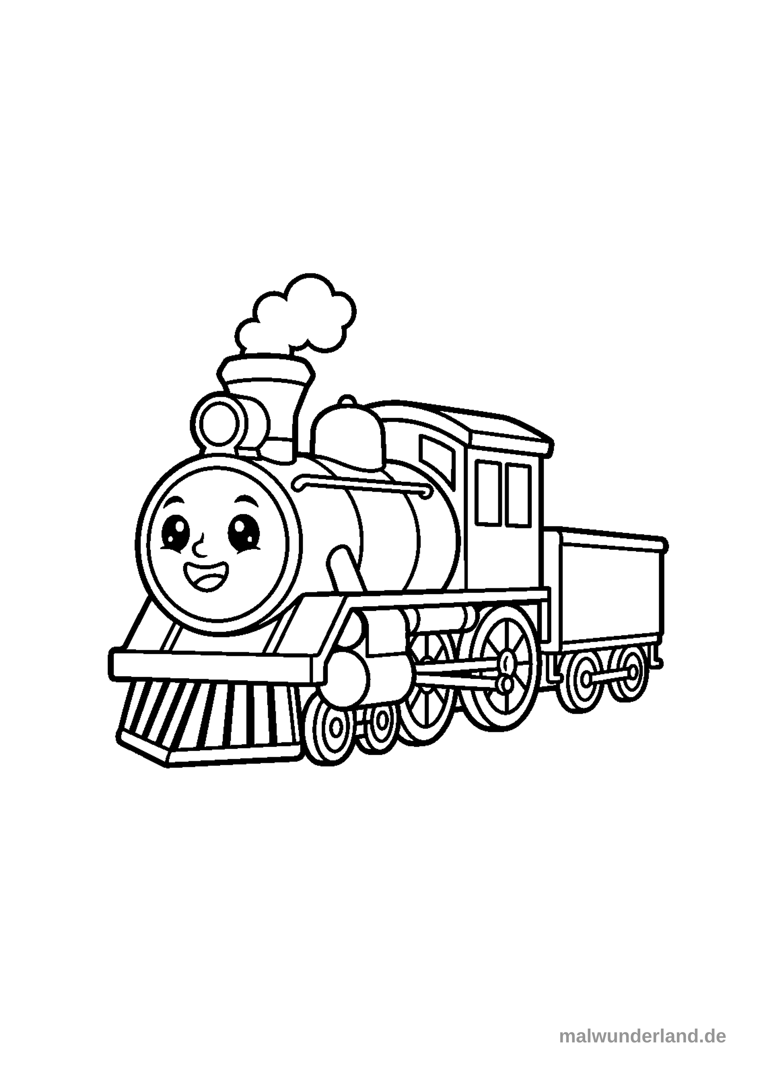 Die Lokomotive kann in allen Farben leuchten. Das Gesicht ist freundlich und strahlend!