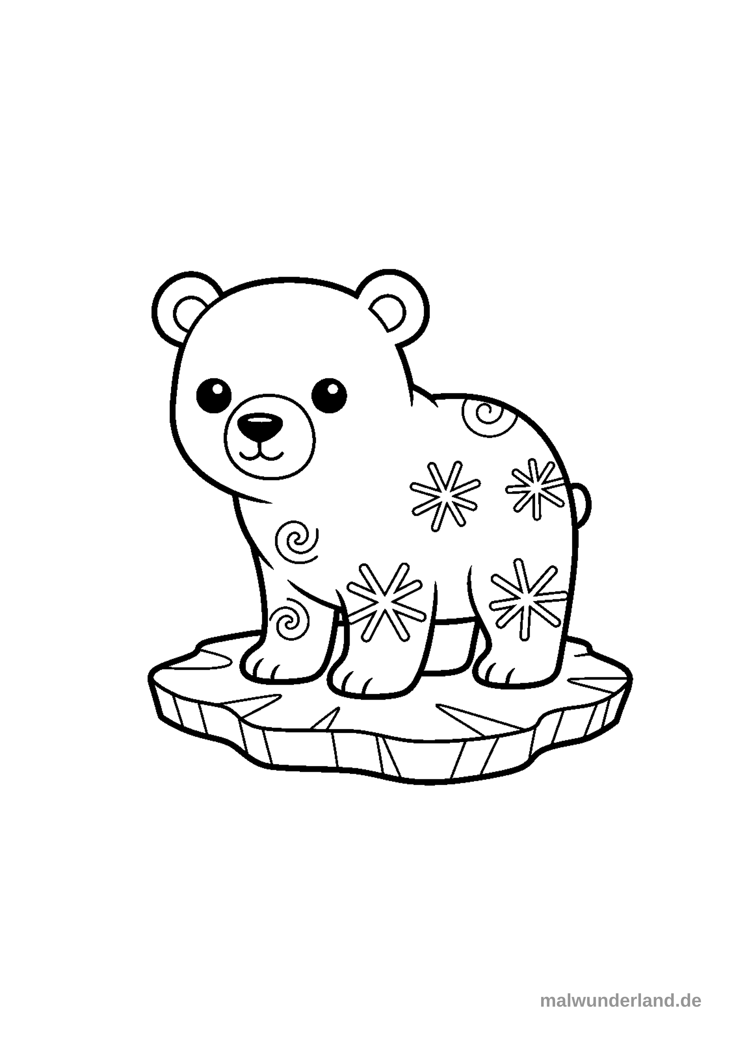 Ein Eisbär, der auf einer Eisscholle steht. Sein Fell ist mit Eiskristallen und arktischen Mustern verziert.