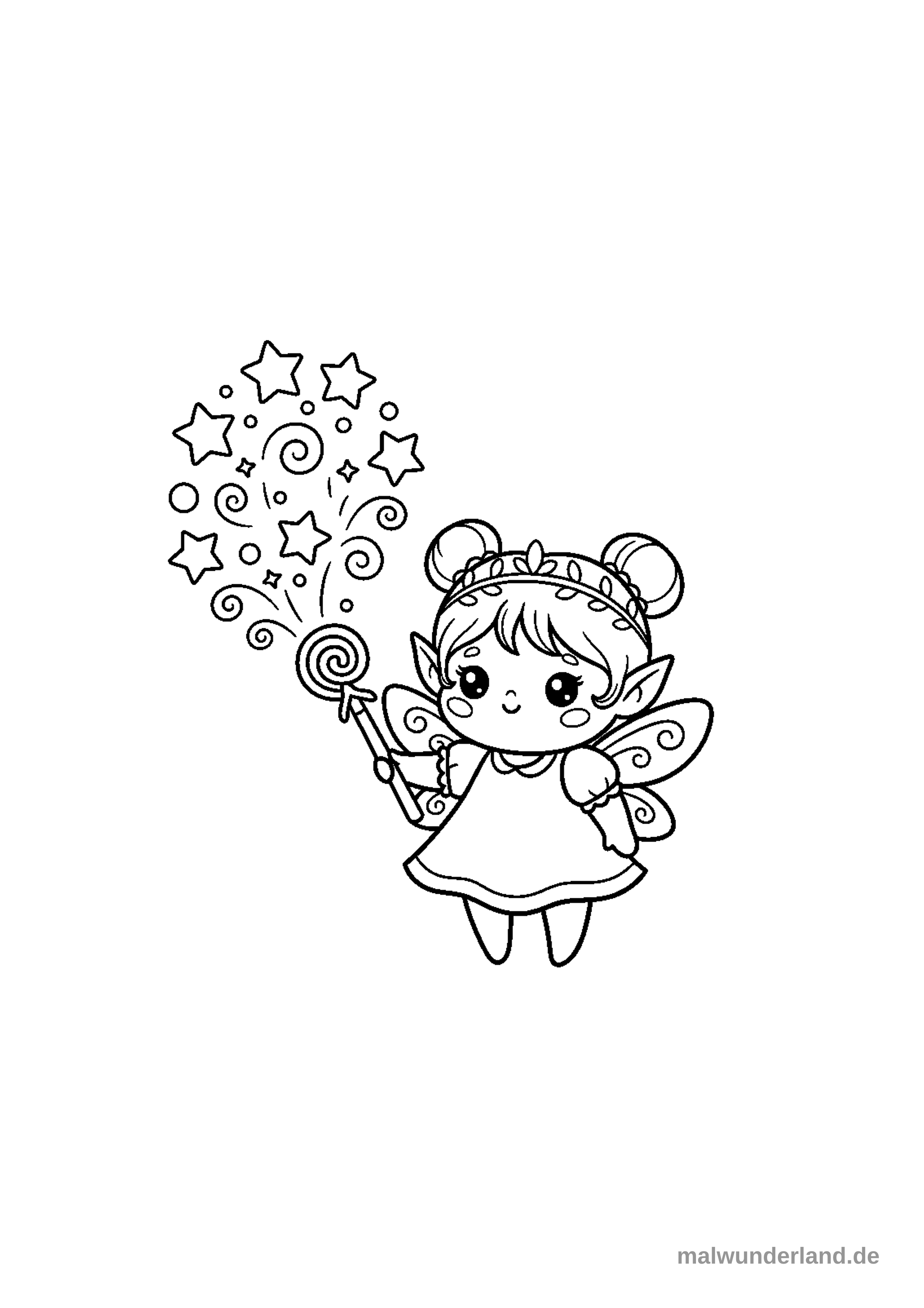 Der Zauberstab kann golden sein. Der Sternenstaub kann in verschiedenen Farben glitzern.