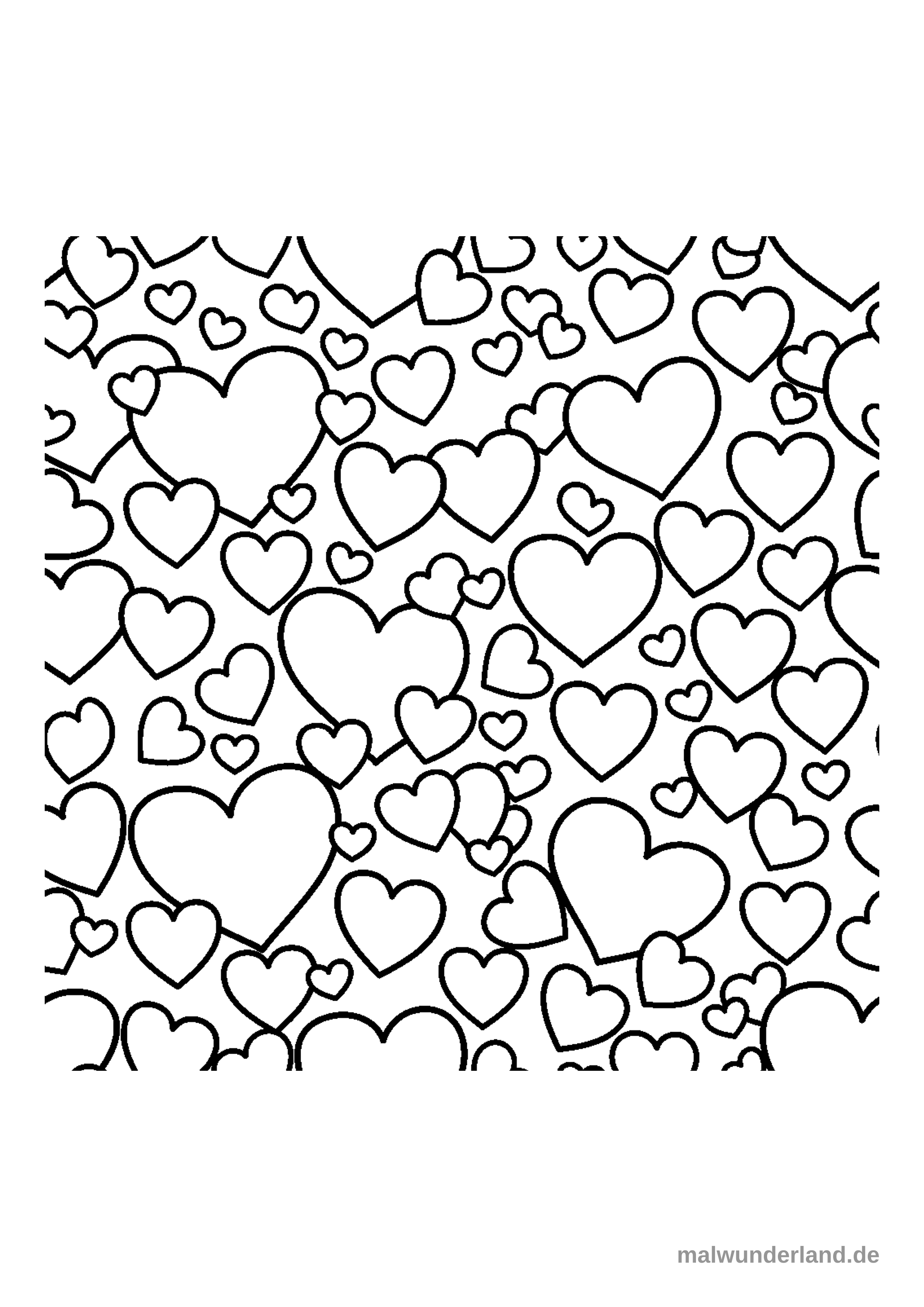 Male die größten Herzen in einem kräftigen Rot oder einem zarten Rosa. Ein besonders großes Herz könnte auch in einem schimmernden Gold erstrahlen. Die kleineren Herzen kannst du in fröhlichem Gelb oder leuchtendem Orange ausmalen. Ein kleines Herz könnte auch hellblau sein. Für die mittelgroßen Herzen wähle deine Lieblingsfarben wie Lila oder Grün. Du könntest auch jedes Herz in einer anderen Farbe malen, um ein buntes Durcheinander zu schaffen.