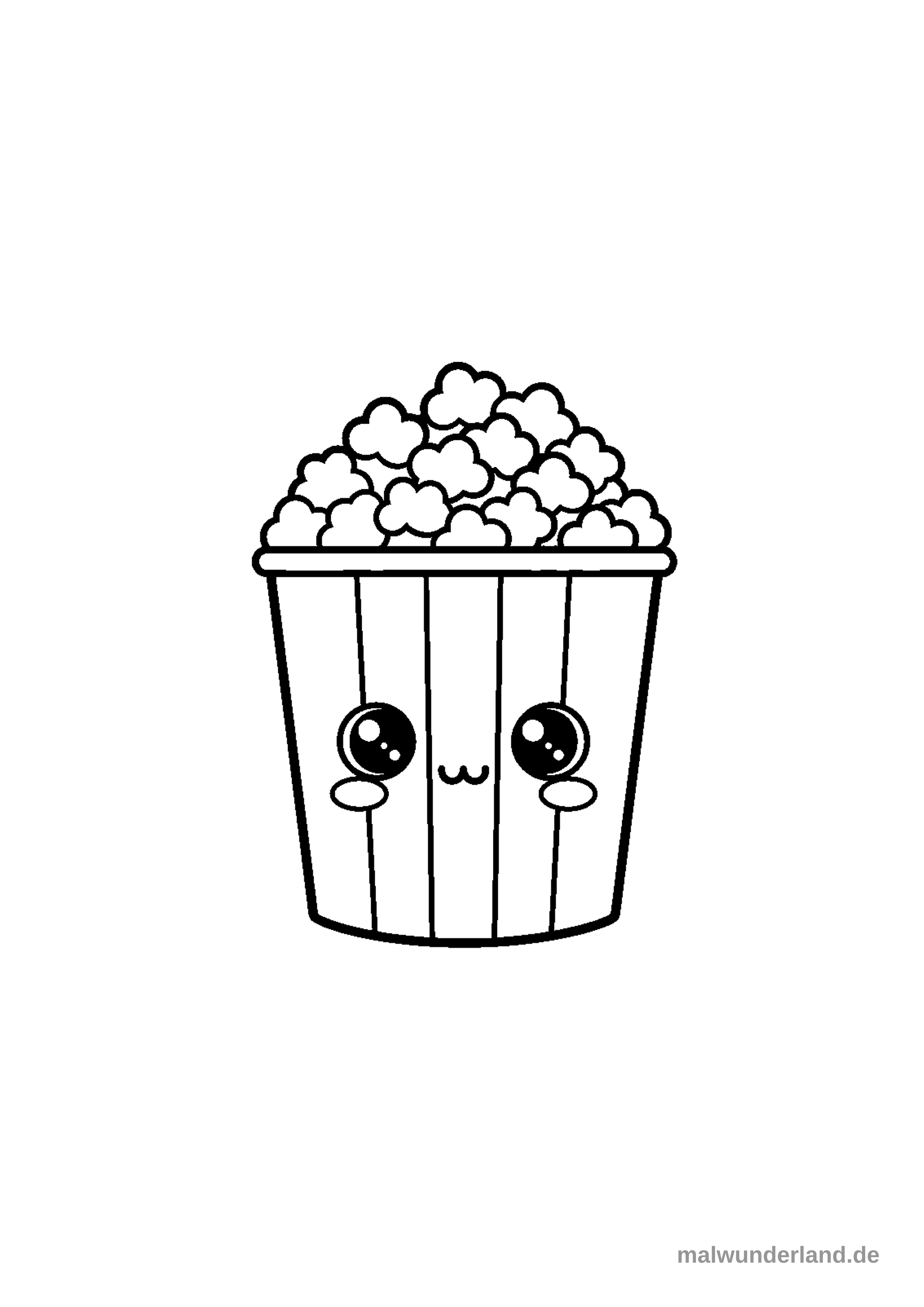 Der Eimer kann rot und weiß gestreift sein. Das Popcorn ist gelb und vielleicht mit etwas Karamell braun gefärbt.