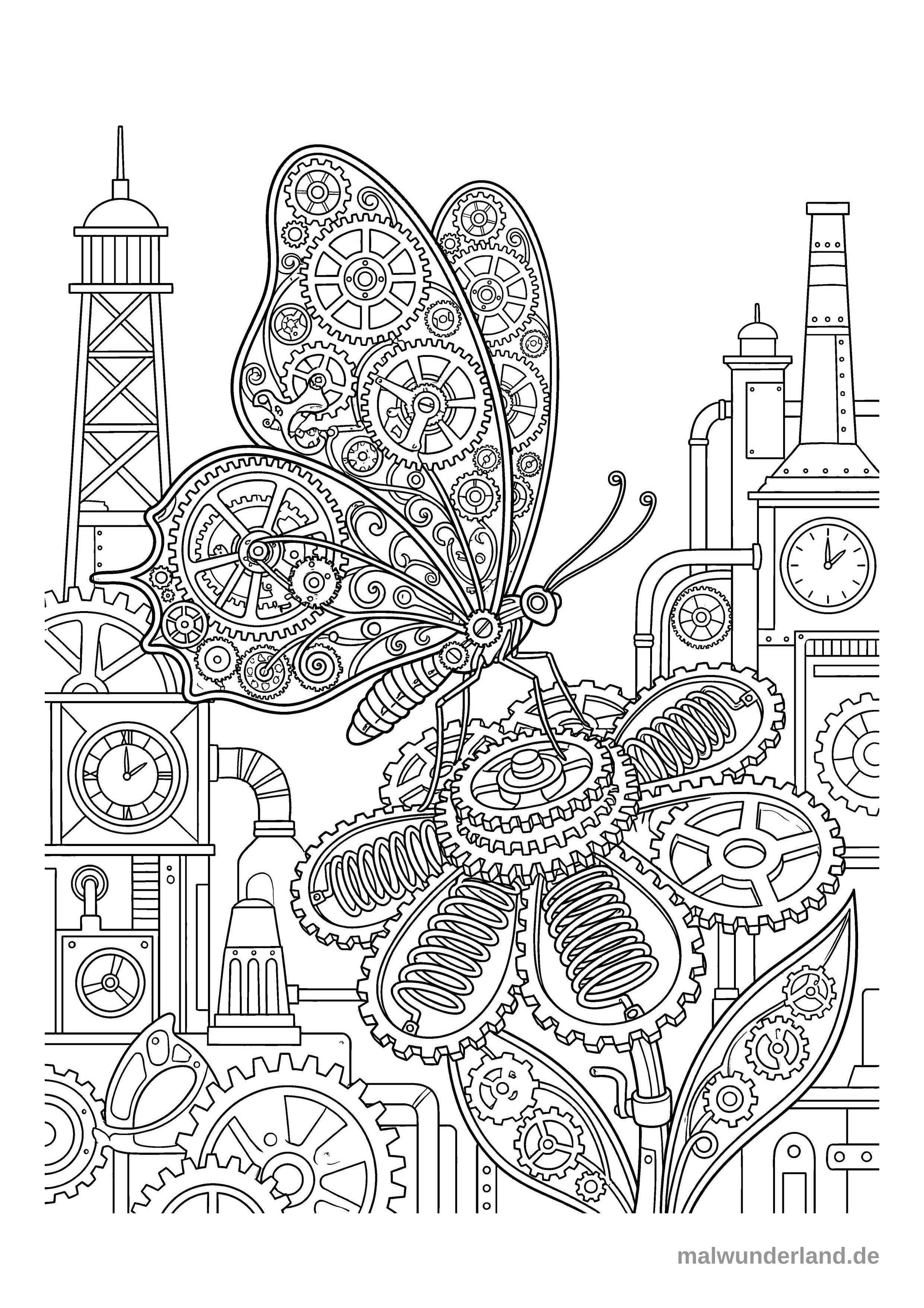 #steampunk #tiere #komplex #erwachsene #zahnräder #zahnrad #uhr #schmetterling #blume #turm #dekorieren #gestalten #basteln #ausmalen