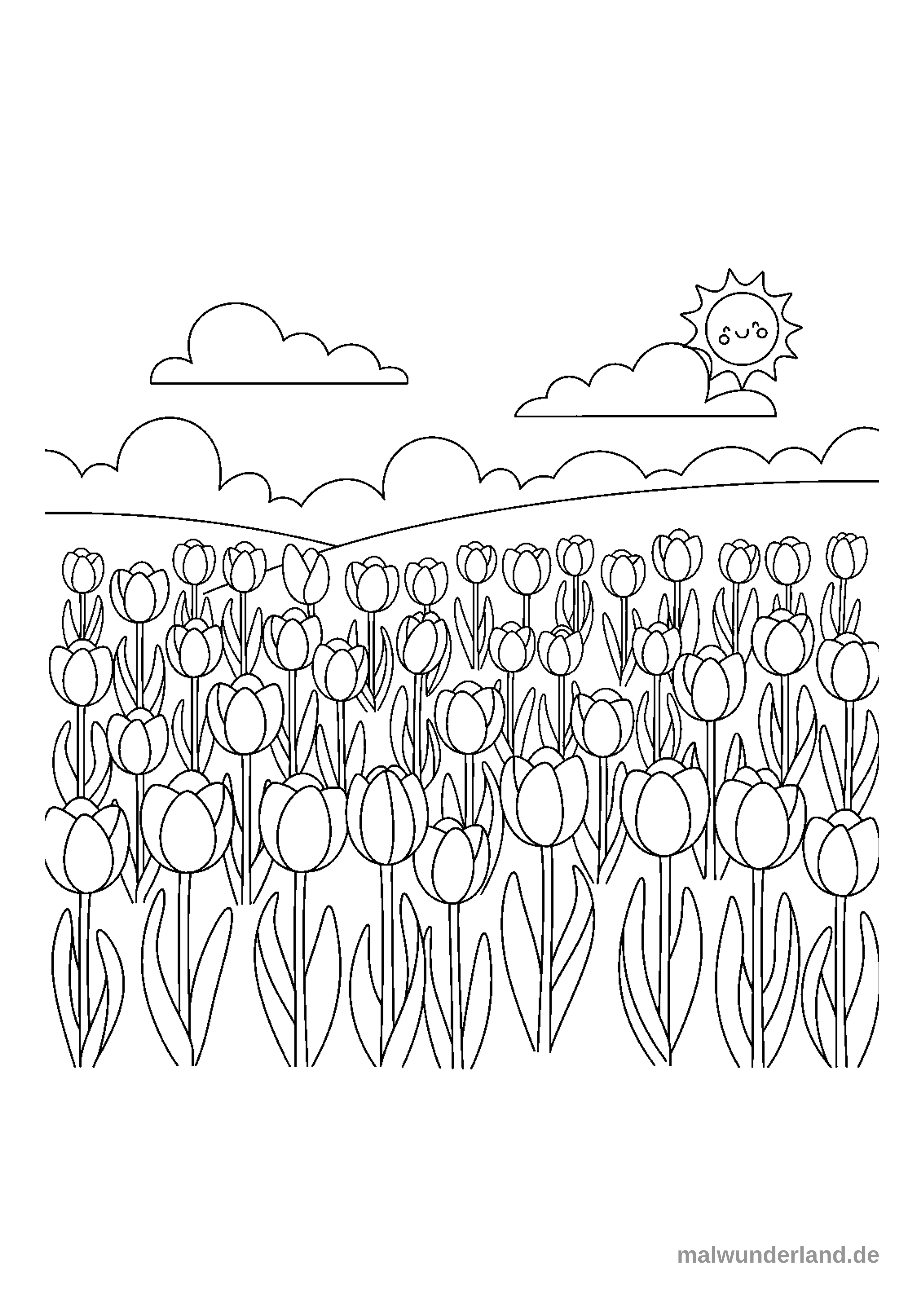 Heute ist ein wunderschöner Frühlingstag! Die lachende Sonne am Himmel wärmt die vielen bunten Tulpen auf dem großen Feld. Jede einzelne Tulpe streckt ihre Blütenköpfe der Sonne entgegen und freut sich darauf, bald in all ihren Farben zu leuchten.